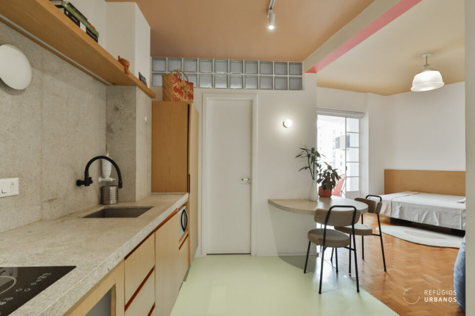 Apartamento com 43,31m², sala e cozinha integradas, mobiliado e com varanda no icônico Germaine Burchard