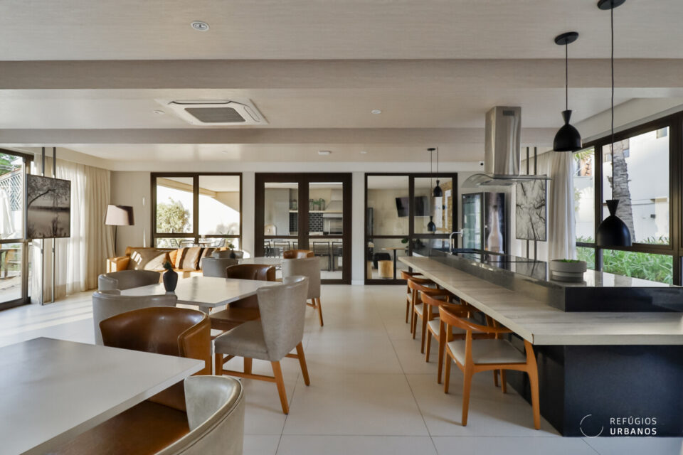 Além disso, o living acomoda facilmente dois ambientes, estar e jantar, criando um espaço perfeito para momentos em família. Já a cozinha, com passagem direta para a lavanderia, está integrada, tornando cada jantar entre amigos muito mais agradável. A varanda tem o piso contínuo, que traz maior amplitude no ambiente.