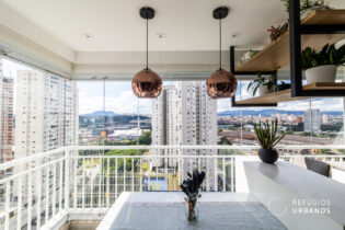 A área de serviço está em seguida, onde destaco a iluminação e ventilação. No projeto original desse apartamento, um quarto extra nesse pedacinho que pode ser o cantinho do home office ou um pequeno ateliê.