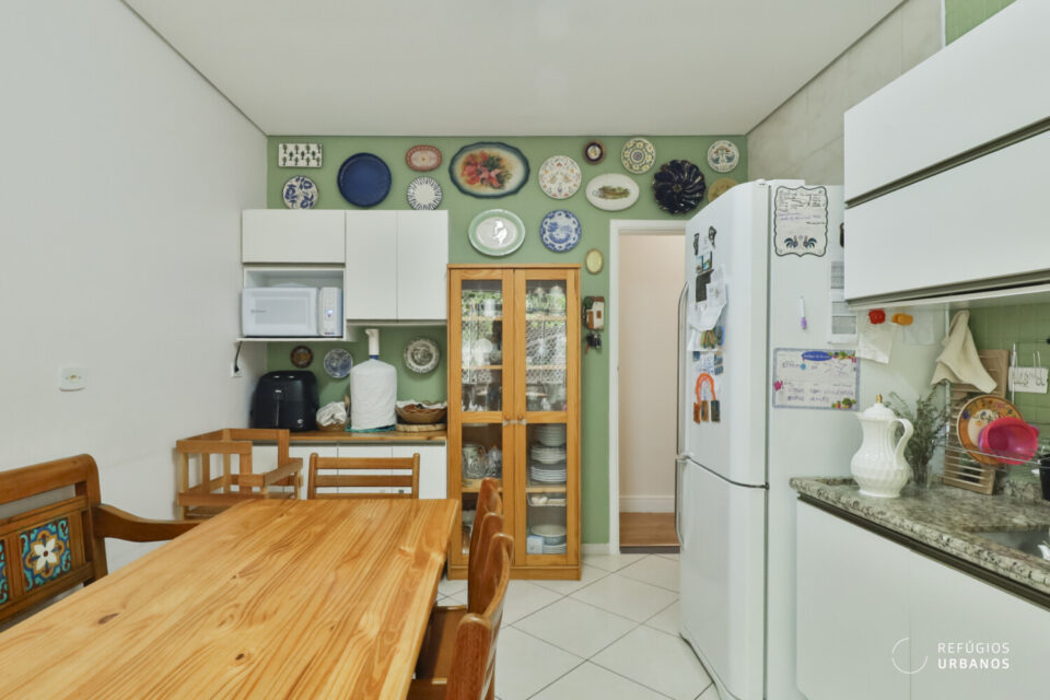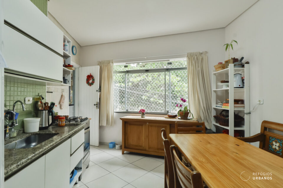 A cozinha é um destaque à parte: ampla, iluminada e ideal para quem gosta de preparar comidinhas com carinho. Por ela, acessamos o quintal, a vaga de garagem e a área de serviço.
