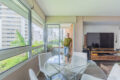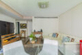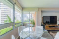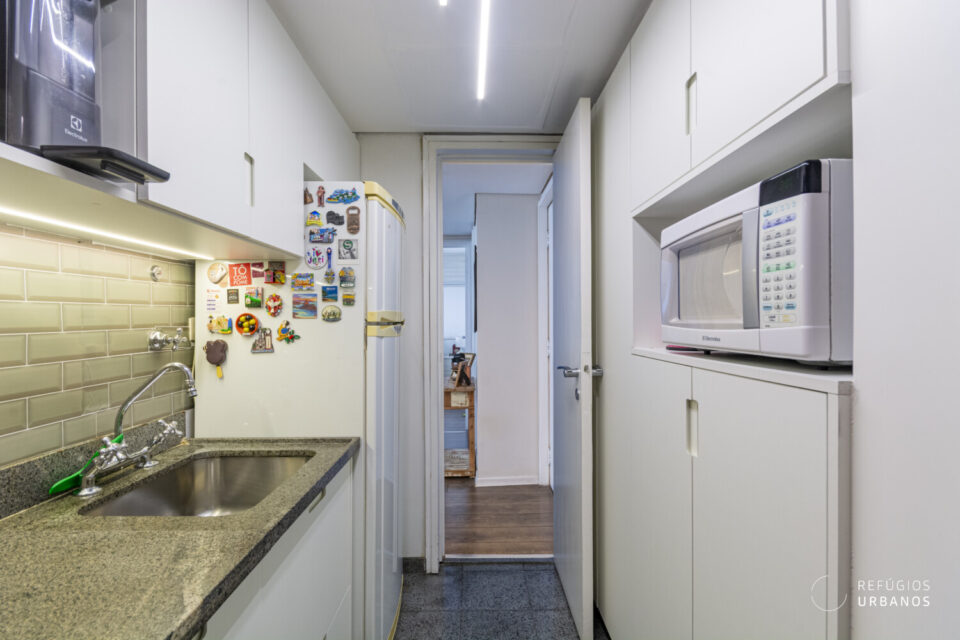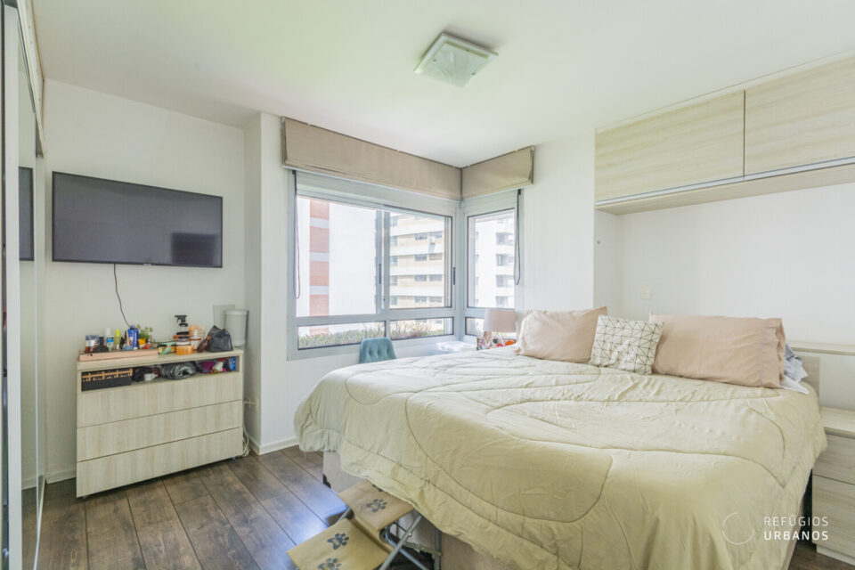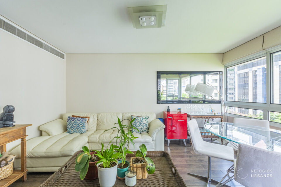 Ao entrarmos, somos logo surpreendidos por um living aconchegante, com janelões cortando todo o cômodo, e marcenaria pensada nos mínimos detalhes. Aqui, a luz natural reina por todos cantos, principalmente com o sol da tarde! O ponto alto, com toda certeza, é a varanda. Muito gostosa, vista para as árvores, trás muito aconchego para o dia a dia corrido.