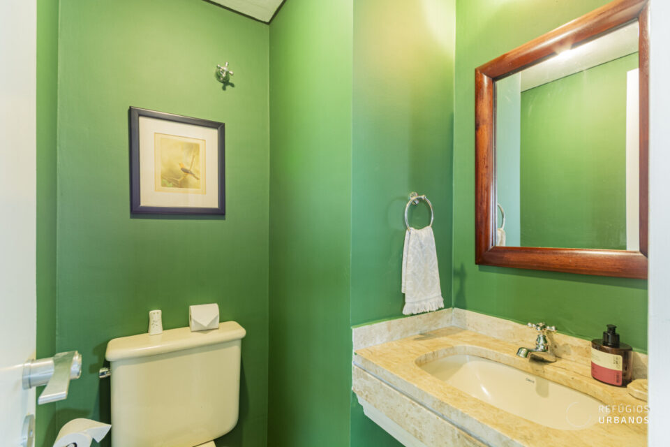 A cozinha está logo à esquerda, otimizando espaços e deixando o ambiente ainda mais prático e gostoso, uma vez que também conta com marcenaria planejada. Aqui é para quem quer praticidade! Há um lavabo logo ao lado da entrada, para atender as visitas.