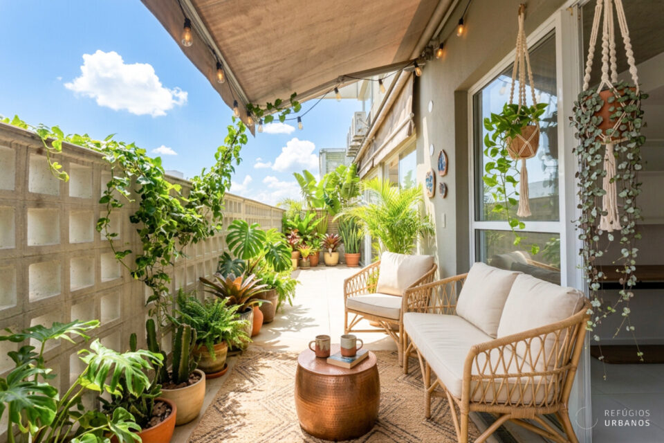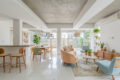 Para começar, ao entrar no primeiro andar, o que chama a atenção é o espaço. O mega living se abre generoso, com laje aparente que entrega personalidade e pé-direito que impressiona. A luz entra por toda parte, criando aquela sensação rara de amplitude que não se inventa. As portas de vidro, por sua vez, se abrem para uma área externa enorme, com cobogós que filtram a luz e o verde de vasos bem cuidados: um convite permanente para respirar.
