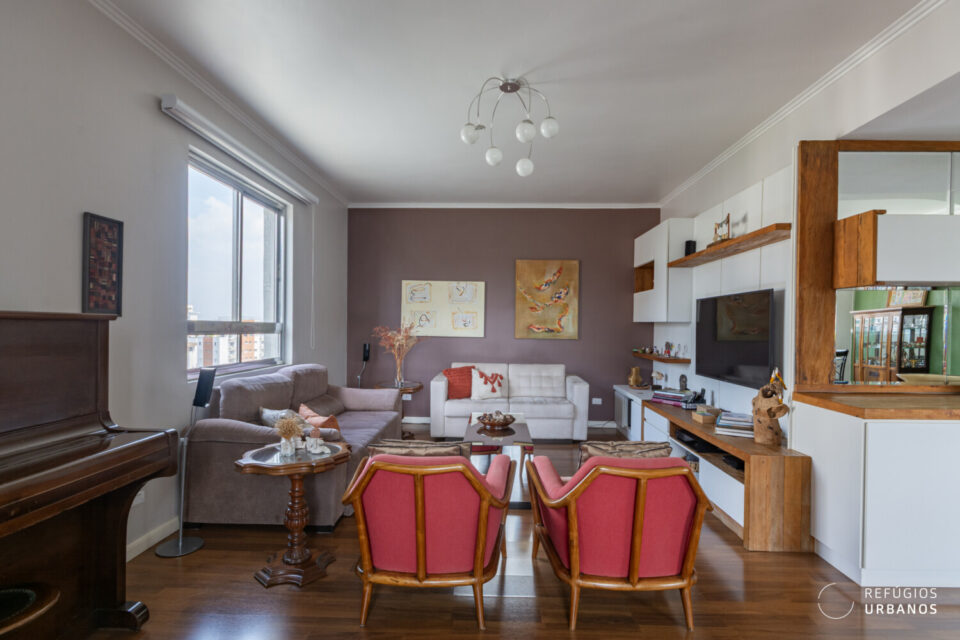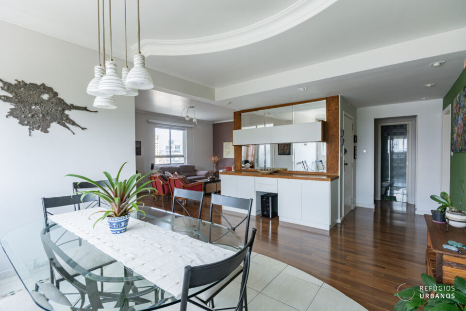 Ao entrarmos no apartamento, logo somos impactados pelos janelões espalhados pelo ambiente. Se você busca um refúgio que não apenas seja iluminado, mas que entre sol nos ambientes, você acabou de achar. Além disso, a vista é um espetáculo à parte, como mencionado acima.