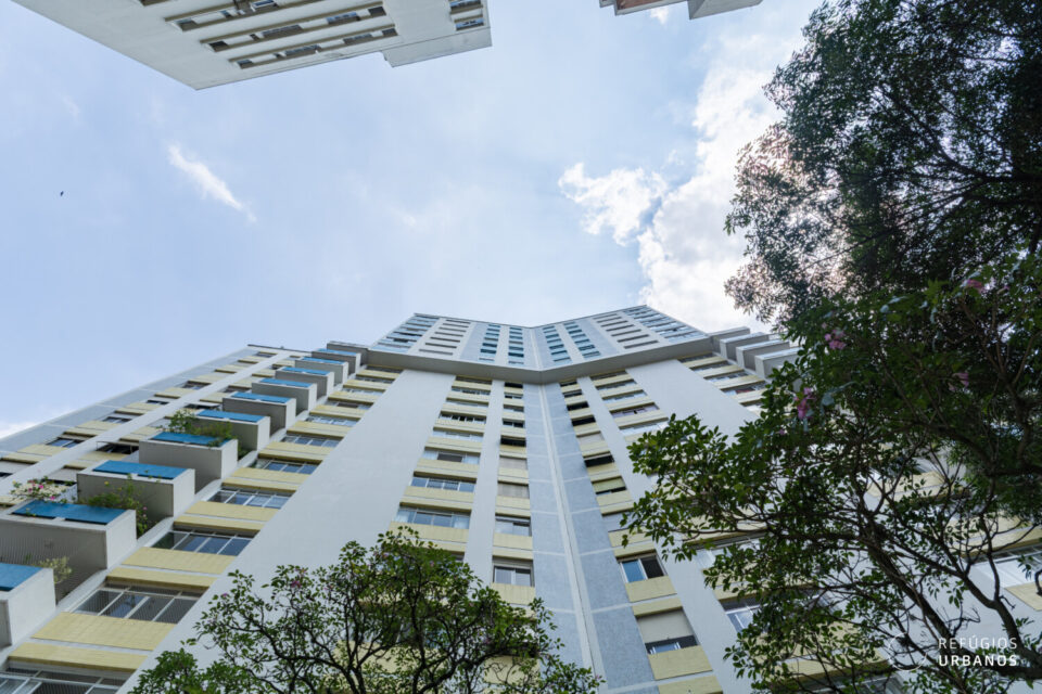 Construído em 1972, o Edifício Casa Branca é um exemplar essencialmente moderno, tanto no espírito quanto no tratamento: sua estrutura independente, permite livre desenvolvimento da planta e o andar térreo, entre pilotis, conta com grafismos na fachada, revestida por pastilhas coloridas.