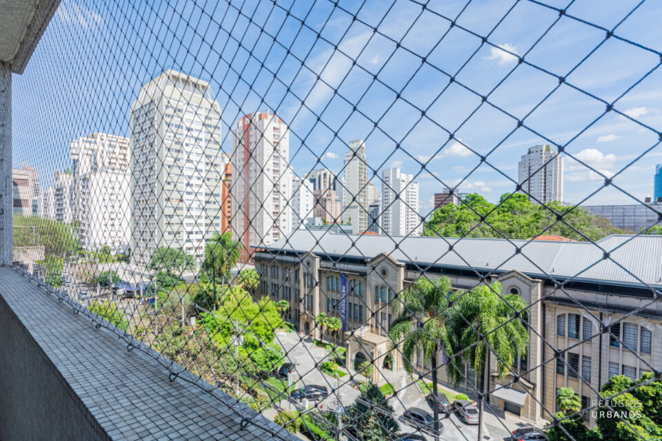 Primeiramente, estamos localizados na parte plana e nobre do Jardim Paulista. Mais precisamente, com vista para uma escola. Ou seja, vista livre, já que ele se encontra em andar alto. Este apartamento está cercado de muitas facilidades e boas opções de comércio/serviço.