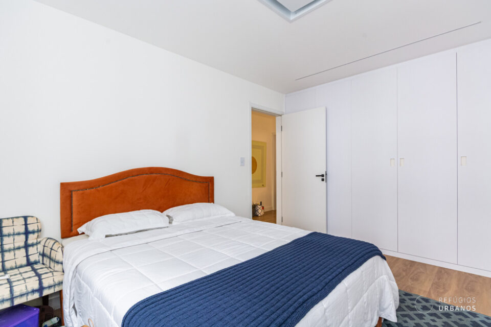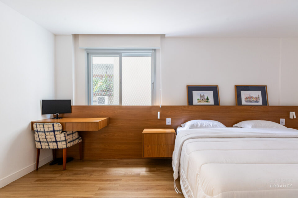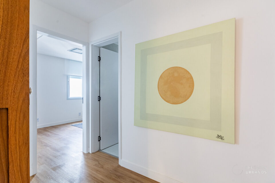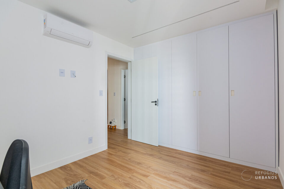 Na área íntima, temos três quartos, sendo uma suíte! O primeiro e o segundo quarto atualmente atendem tanto como home office quanto como quarto de visitas para os amigos e família. Ambos possuem armários embutidos.