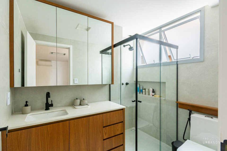 A suíte master do casal, conta com um banheiro enorme, e é muito charmosa, além de contar com marcenaria de sobra. Definitivamente, o sinônimo de viver bem!