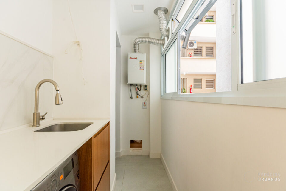 Na parte de apoio, encontramos área de serviço com bom espaço e muito bem planejado!