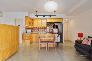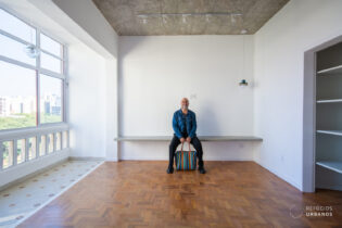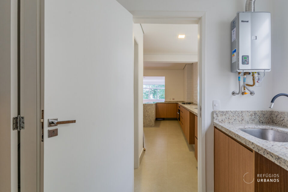 Para finalizar, na parte de apoio, encontramos uma área de serviço bem generosa, que, do mesmo modo, mantém os detalhes (lindos) do imóvel, com armário embutido e um banheiro de apoio!