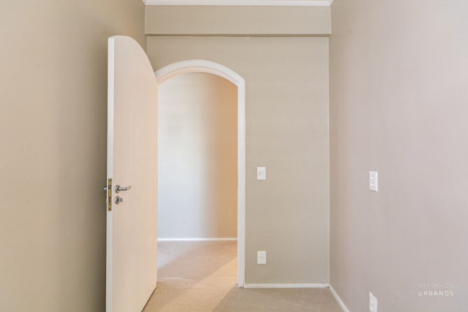 Os quartos também são privilegiados, outra grata surpresa do apartamento: com janelões que revelam uma vista verde deliciosa, é para quem valoriza o conforto! Ou seja, são 2 quartos amplos, perfeitos para relaxar, e os banheiros possuem chuveiro à gás.