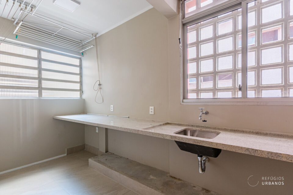 Por fim: a lavandeira é muito ampla, conta com dois pequenos quartos de serviços e um lavabo, e temos 2 vagas na garagem!
