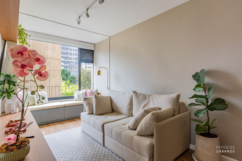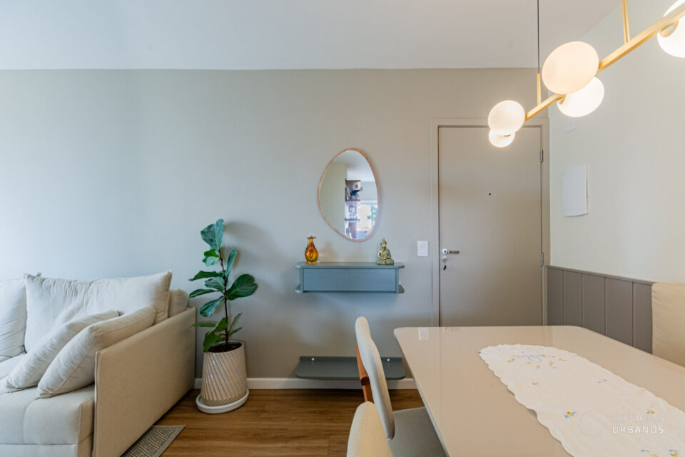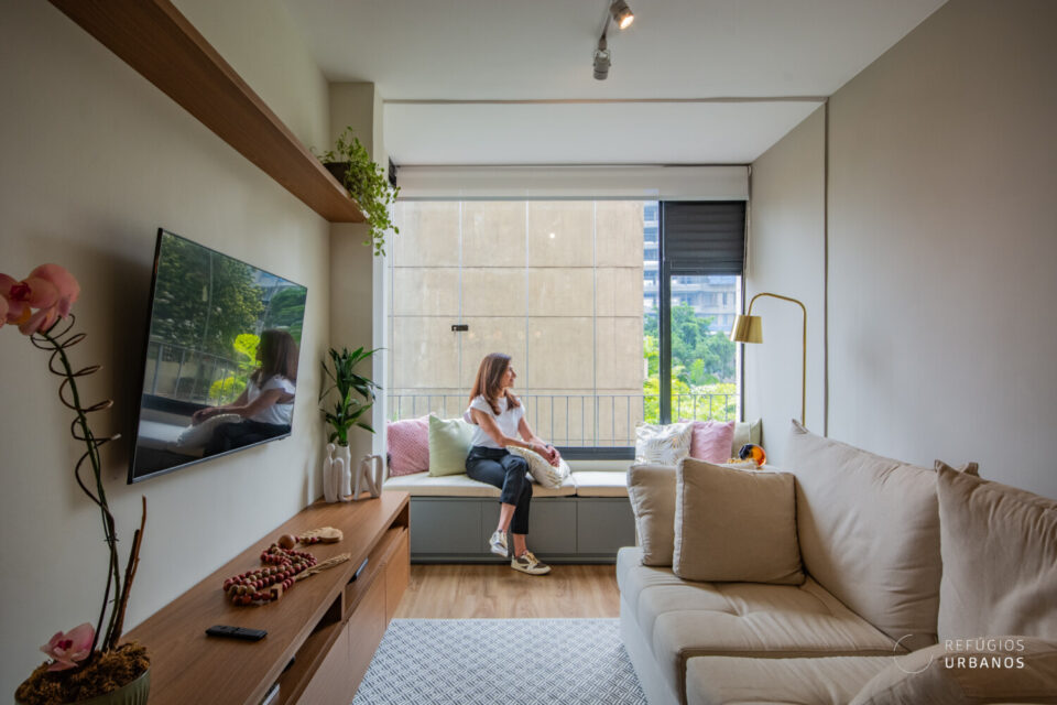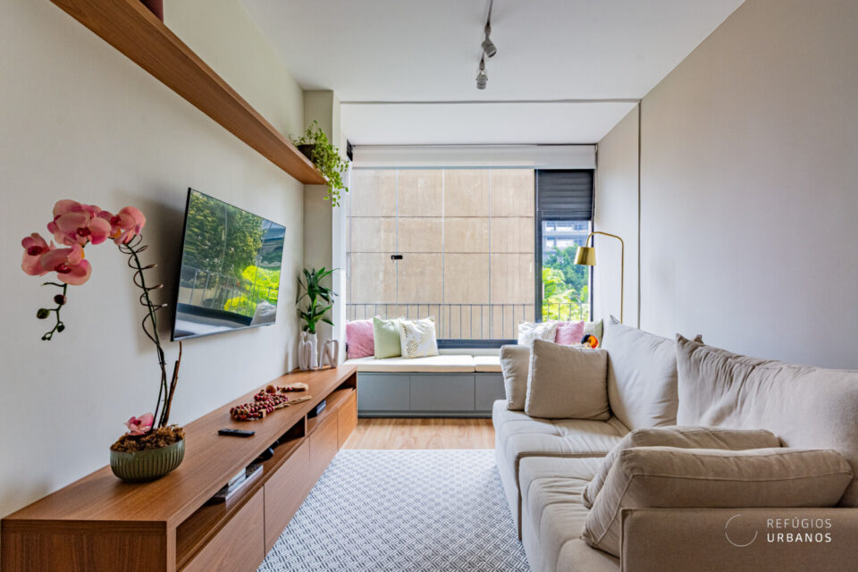 O apartamento possui 40,37 m², além de um living aconchegante com o fechamento da varanda, que traz muita luminosidade ao apartamento. Além disso, marcenaria, feita sob medida!
