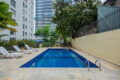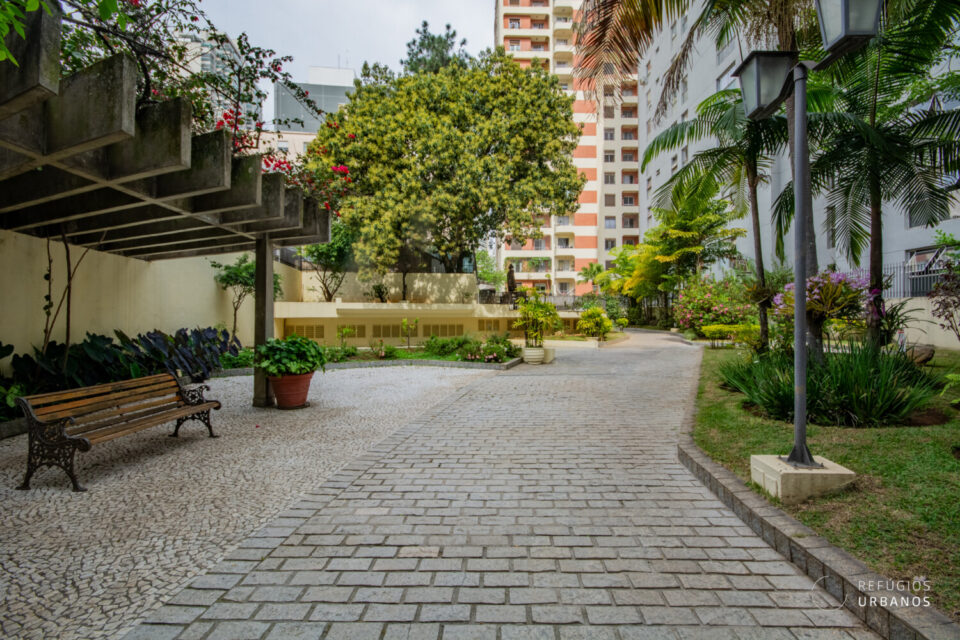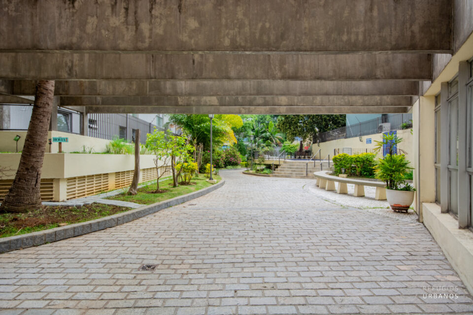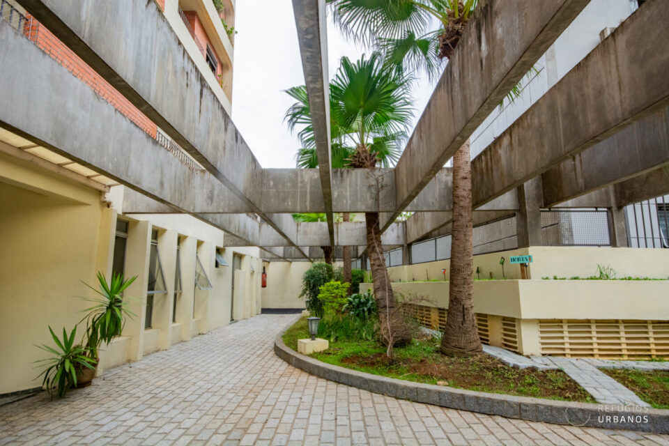 Por fim, o prédio tem um enorme recuo em relação à rua, que, portanto, traz privacidade e leveza. Uma localização tranquila e, ao mesmo tempo, bem conectada com a cidade.