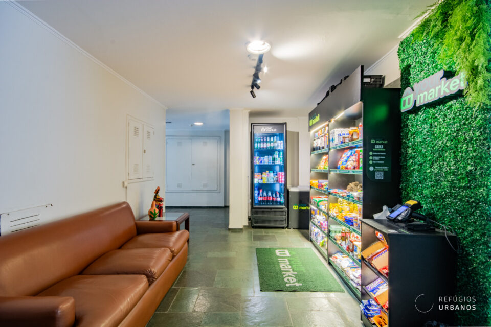 Além disso, possui também área externa grande e aconchegante no térreo, com mini mercado, academia, piscina e um jardim acolhedor. Conta também com salão de festas e uma horta.
