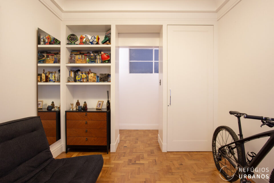 Além disso, o chão de todo o apartamento é de taco, lindamente restaurado: detalhes que a gente ama!