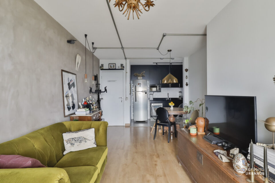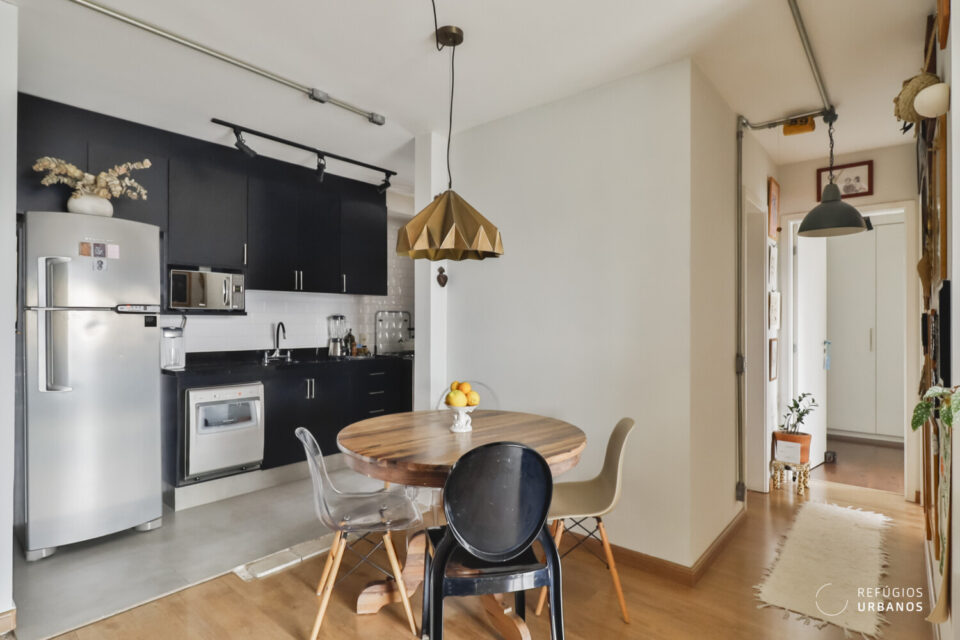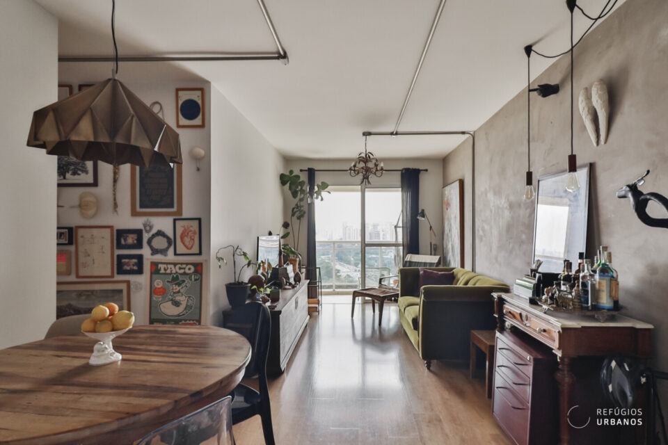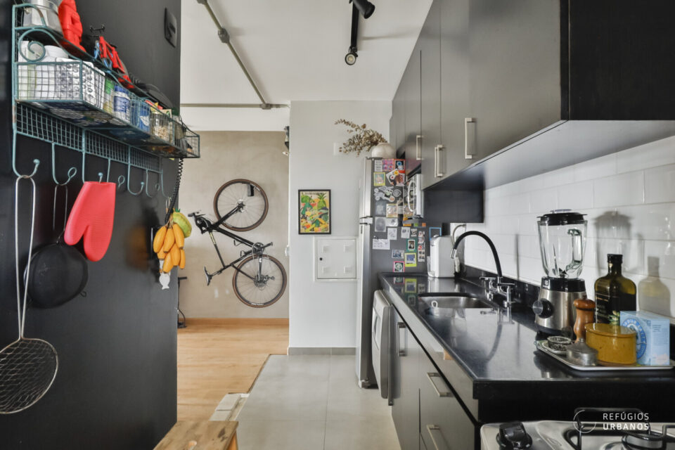 Isso sem mencionar o lindo piso de madeira, aquecimento a gás, ar-condicionado na suíte, marcenaria nos dois quartos, assim como em todos os cômodos, estilo industrial e área de serviço bem ventilada.