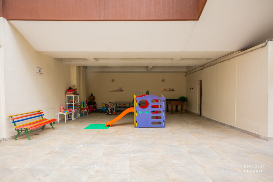 São dois elevadores e nas áreas comuns, temos o salão de festas, churrasqueira, bicicletário e uma área livre de playground.