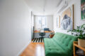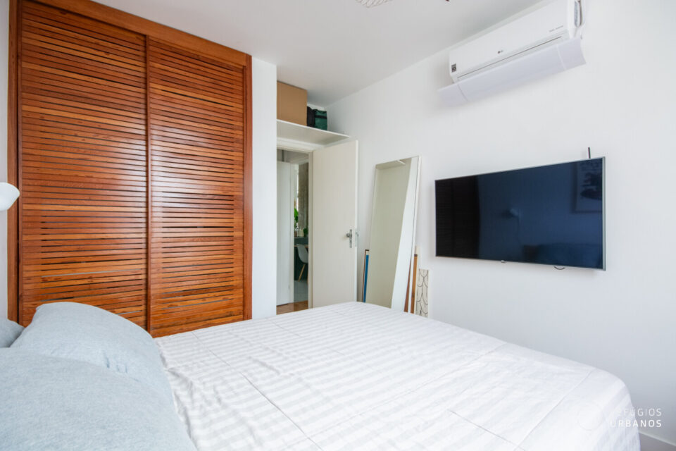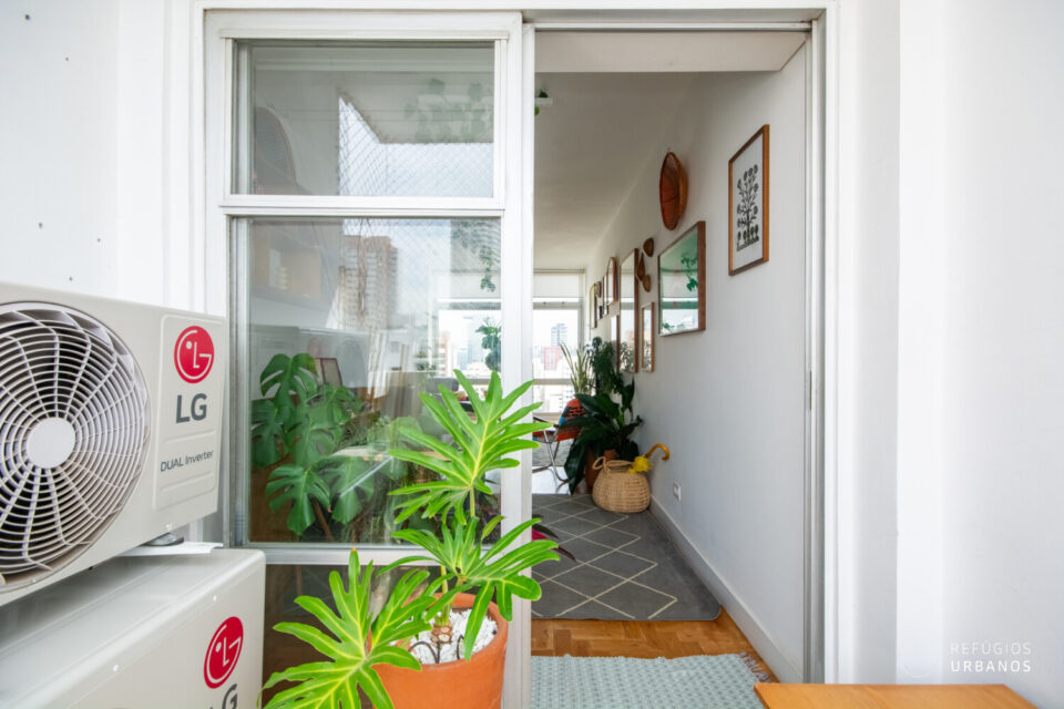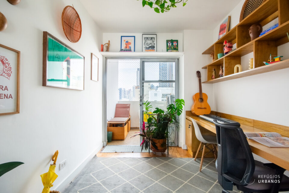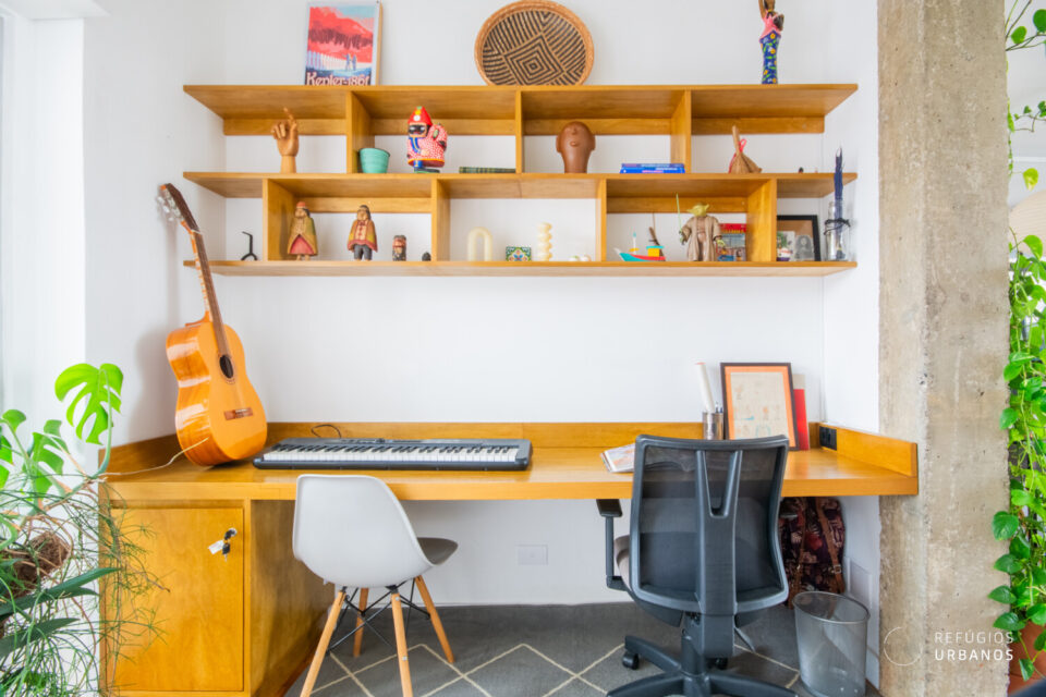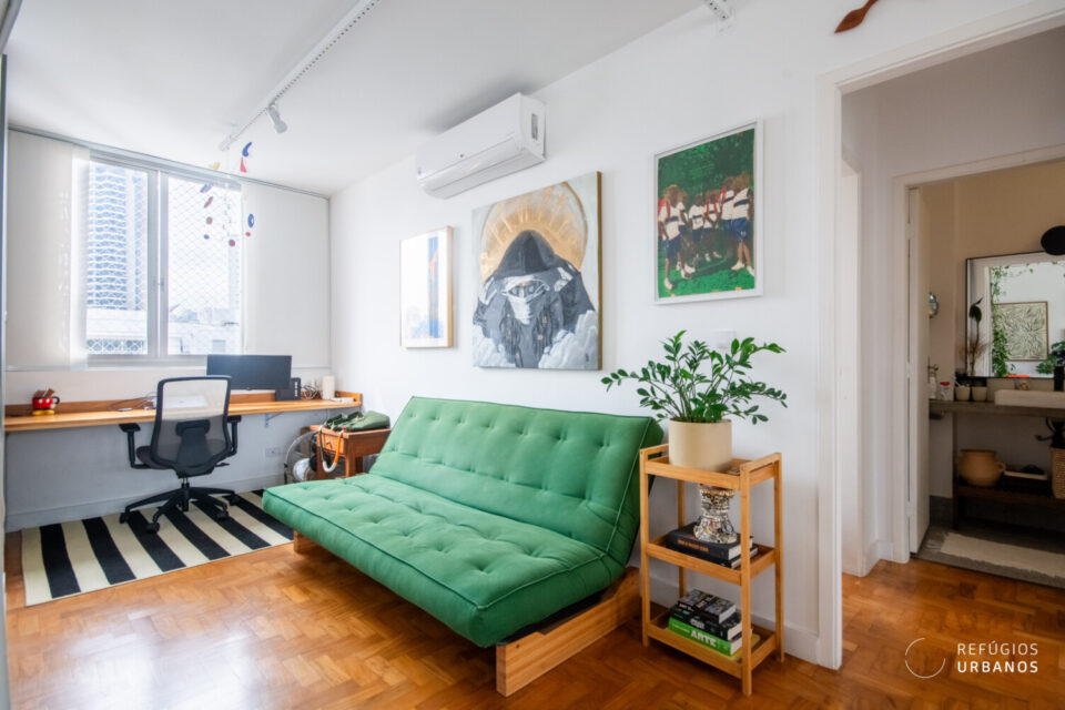Logo depois, temos o espaço separado para o home office e por aqui o ar condicionado já está instalado em todos os ambientes.