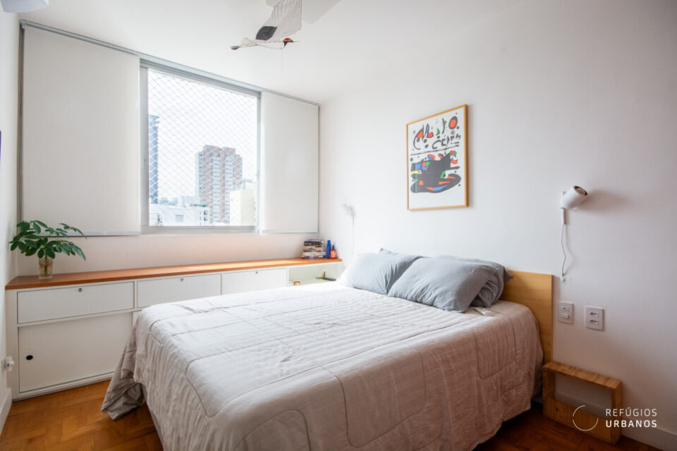 A planta original são dois dormitórios, a suíte assim como todo o apê também tem janelões e muita luz natural.