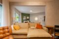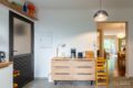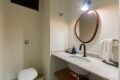 A lavanderia é muito ventilada e funcional. Além disso, conta com banheiro de apoio.