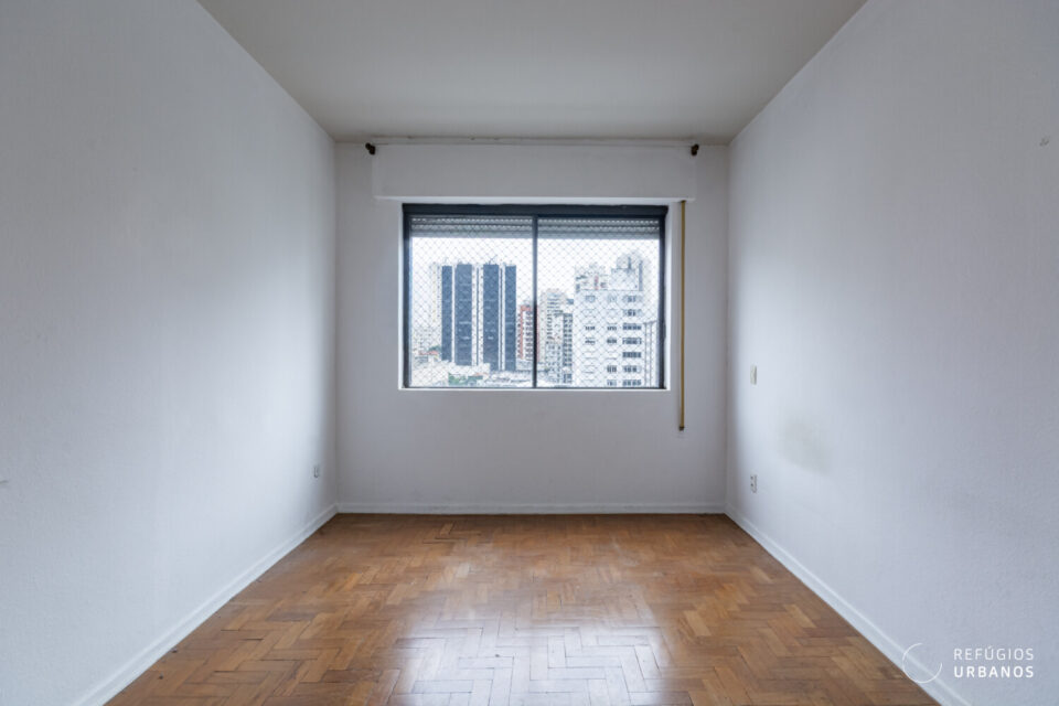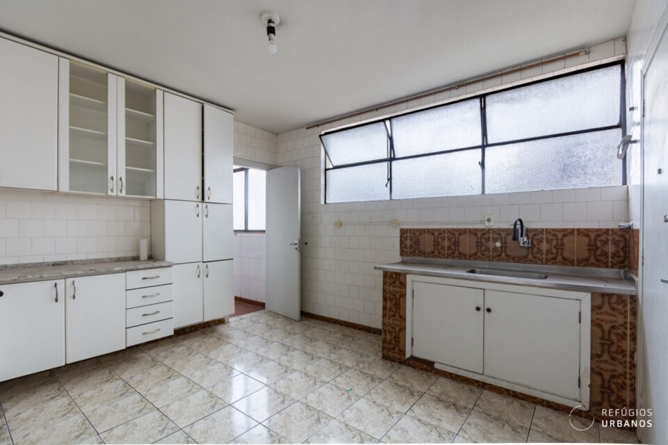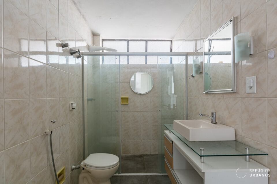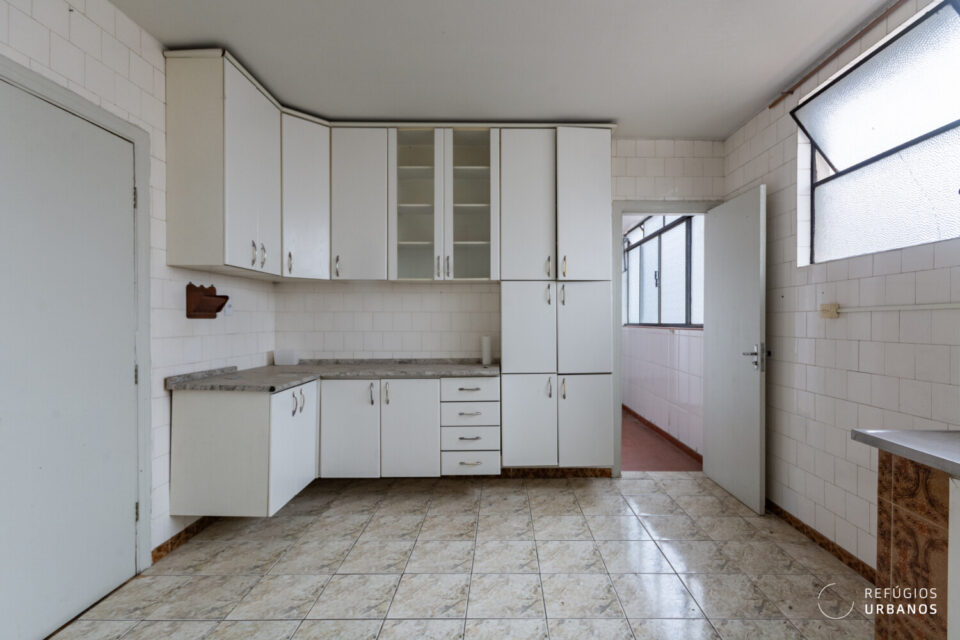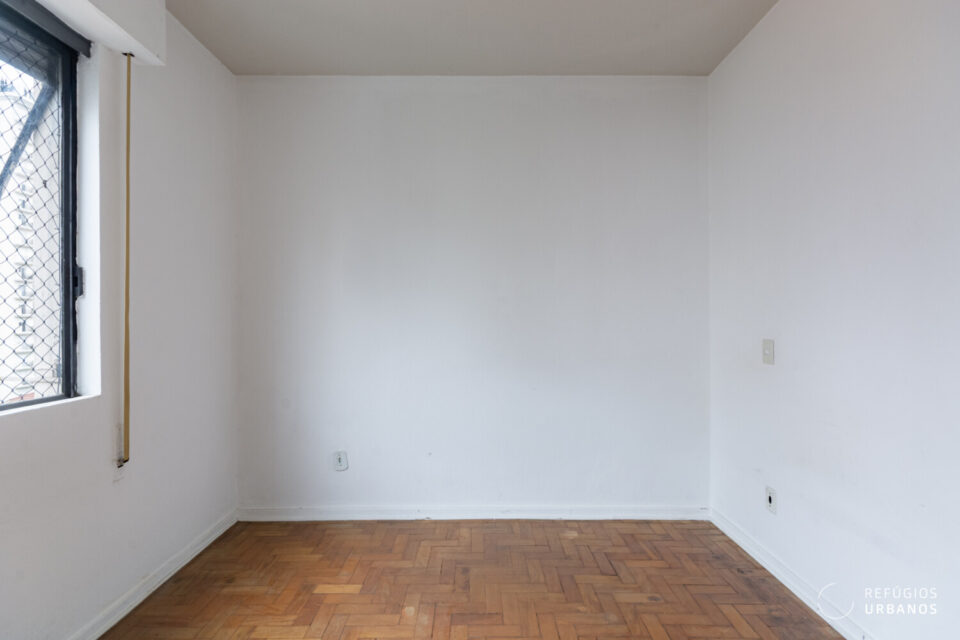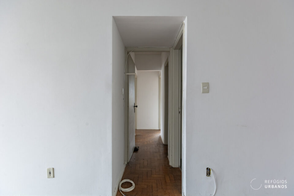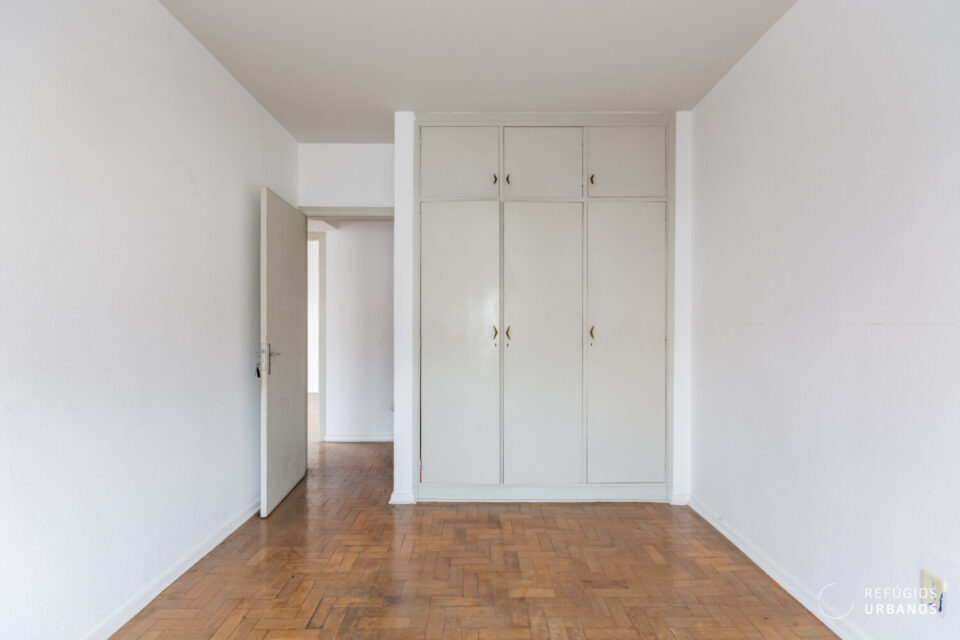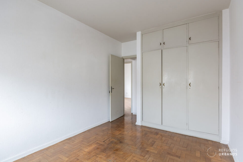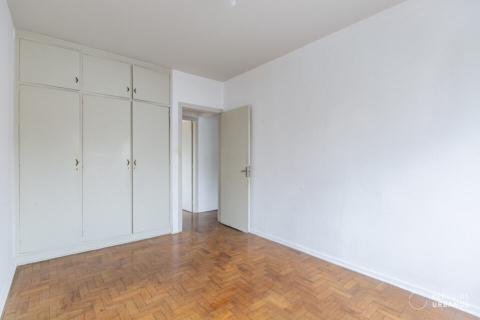 Na área íntima, os três quartos têm boas proporções e se adaptam facilmente a diferentes configurações. Um destaque especial vai para a marcenaria original, que vem de presente e carrega todo o charme dos apês antigos. Os banheiros acompanham essa dinâmica e facilitam o dia a dia, além de ajudarem em uma possível reorganização dos espaços.