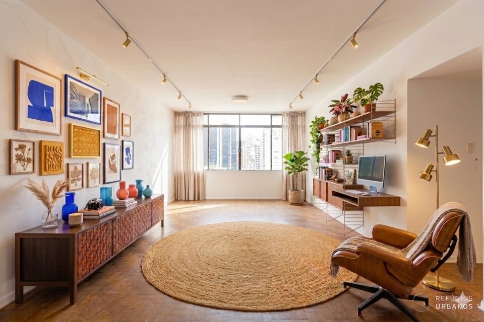 Esse é aquele tipo de apartamento que a gente entra e, quase automaticamente, começa a imaginar todas as possibilidades. Com 116 m², ele traz uma planta bem distribuída, com sala ampla, três quartos e dois banheiros, sendo um completo e um lavabo. Ao mesmo tempo, oferece espaço de sobra para transformar tudo e deixar cada ambiente com a sua cara.