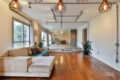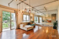 O living para três ambientes é um dos grandes protagonistas do imóvel. Amplo, elegante e extremamente iluminado, conta com dois janelões que garantem luz natural abundante ao longo do dia e reforçam a conexão com o verde.