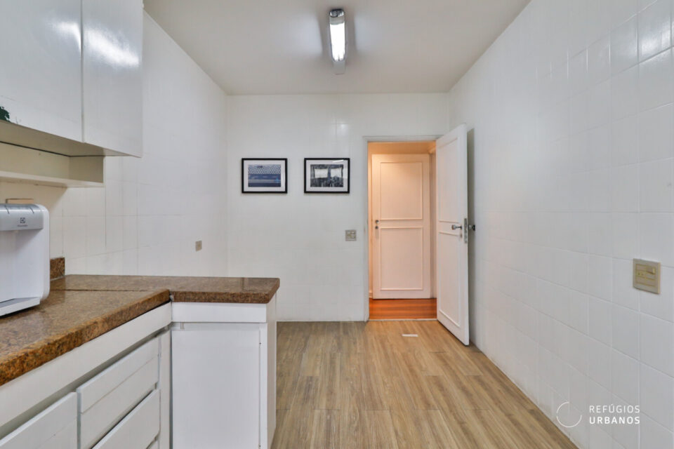 A cozinha com copa e a área de serviço ampla oferecem base perfeita para uma modernização completa, com grande potencial de personalização conforme o estilo de vida do novo morador.