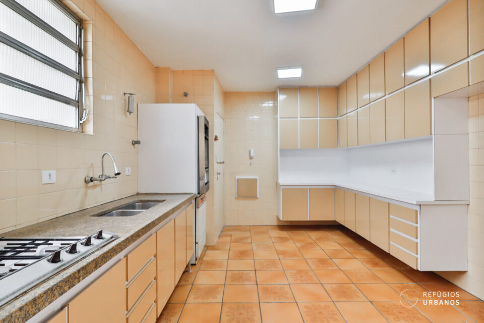 Potencial de reforma à 600m da Av. Paulista. Com 145m² de área útil, este apartamento oferece uma planta generosa que raramente se encontram em imóveis mais novos. São três dormitórios bem dimensionados, uma sala dividida em três ambientes — ideal para quem gosta de receber —, cozinha ampla, banheiro social, lavabo (com chuveiro), além de uma extensa área de lavanderia com quarto e banheiro de apoio.