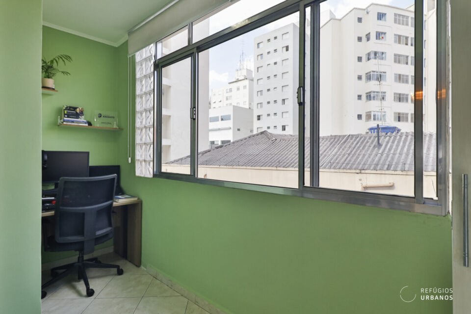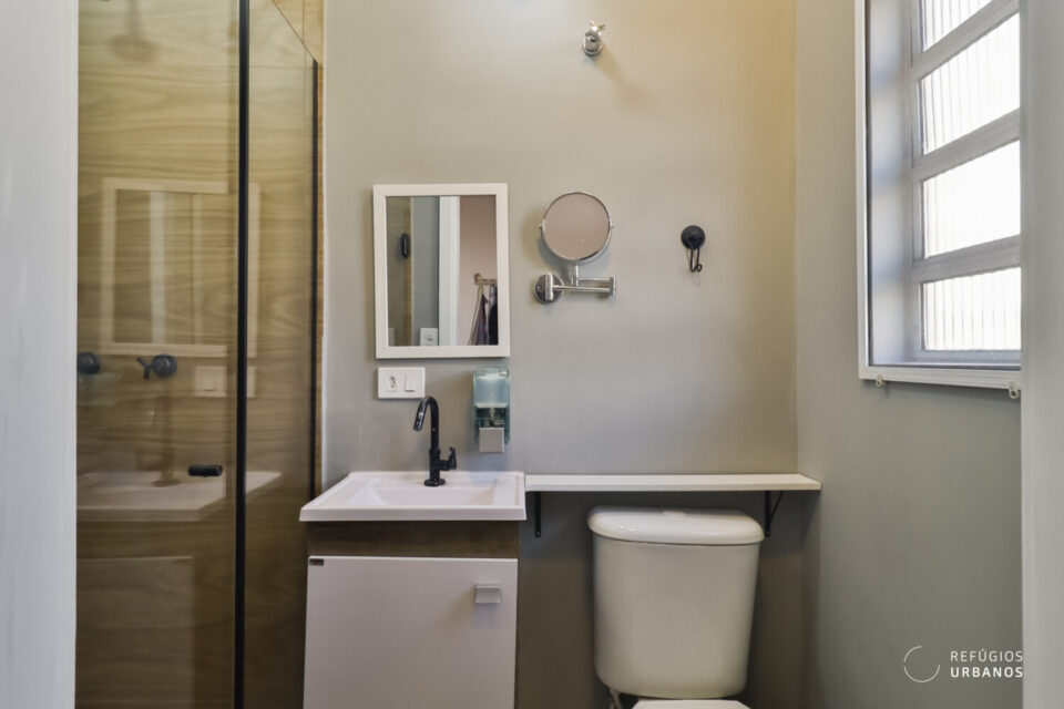 Além disso, um lavabo discretamente localizado atende ao social sem comprometer o espaço. Do mesmo modo, temos um espaço reservado ao home office.