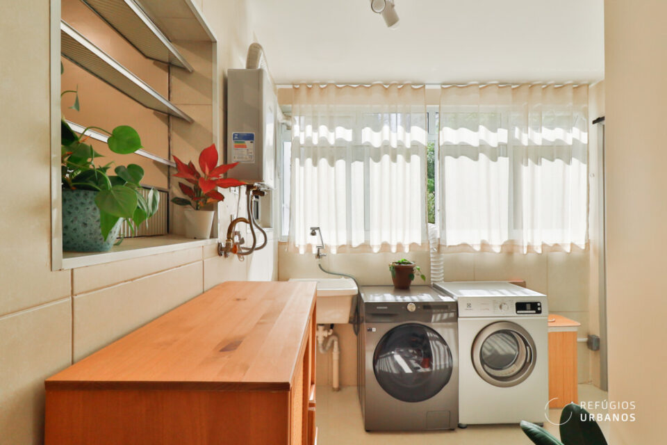 Ao cruzar a porta, a primeira sensação é de espaço. A sala ampla acolhe com generosidade e, além disso, integra-se naturalmente à cozinha em um ambiente fluido, ideal para quem gosta de receber ou simplesmente aproveitar o cotidiano com leveza. Logo em seguida, a área de serviço surge discreta e funcional, trazendo despensa e banheiro de apoio, e garantindo que o dia a dia flua sem atritos.
