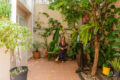 Uma porta a conecta a cozinha ao quintal, onde chegamos a uma lavanderia, despensa e banheiro completo de apoio.