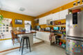 A área de jantar é bem conectada com a cozinha por meio de portas de correr. Ao passar por elas, há uma boa ilha para auxiliar nos preparos, onde é possível se reunir ao redor. A cozinha tem armários e janelas fartas, e, desta forma, conta com bastante ventilação e luz.