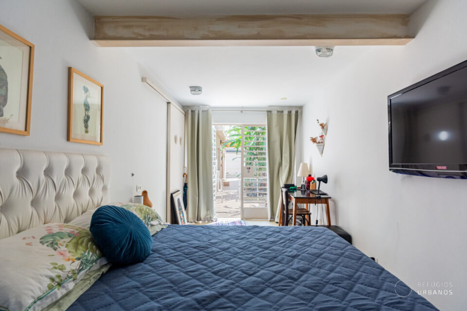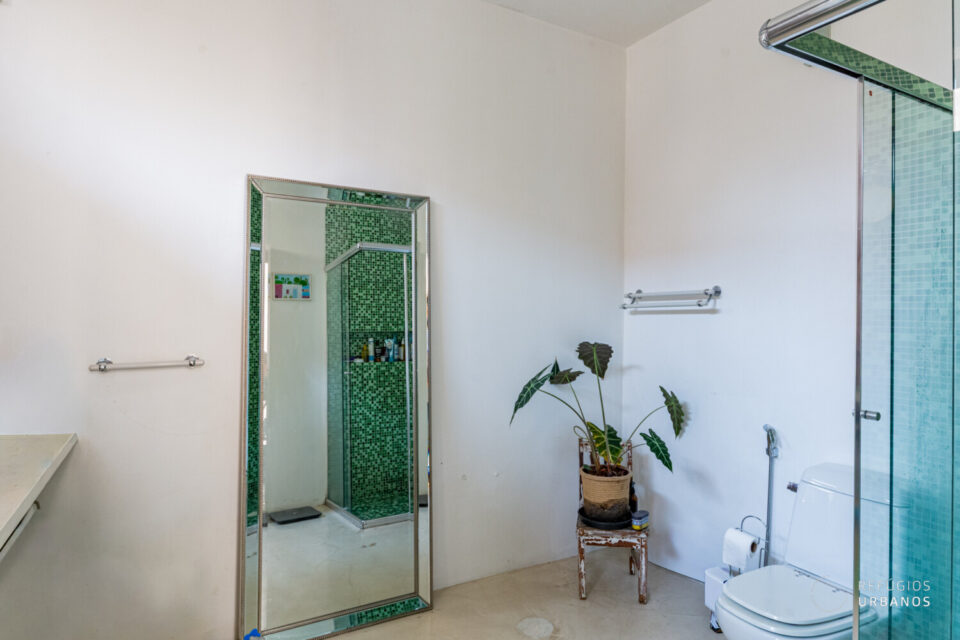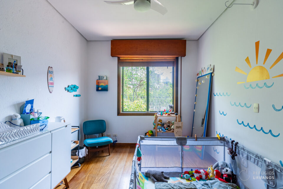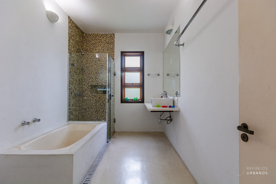 Um quarto amplo é atendido por um banheiro completo, com banheira. Já a suíte, tem duas janelas marcantes e acesso a mais um banheiro, sauna seca e varanda privativa com chuveirão. Ou seja, este é um espaço delicioso para tomar sol, praticar ioga ou ler pela manhã.