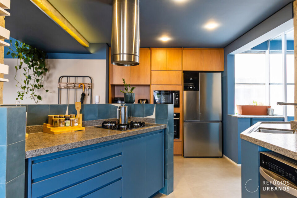 A cozinha também foi integrada, criando um mega ambiente social, ideal para quem adora receber os amigos.
