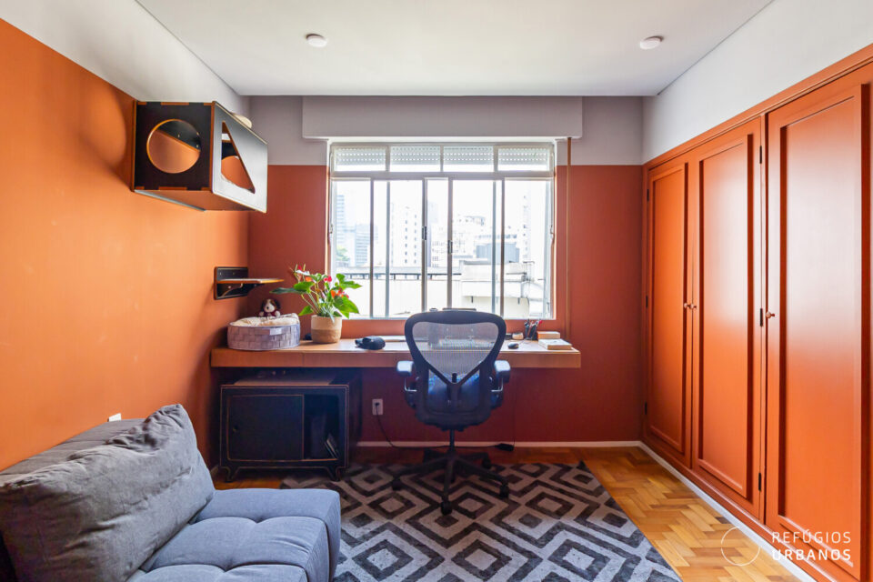 A reversão é simples, caso se deseje recuperar o terceiro quarto. Atualmente, o espaço é uma charmosa área de leitura, perfeita também para relaxar depois de um dia intenso.