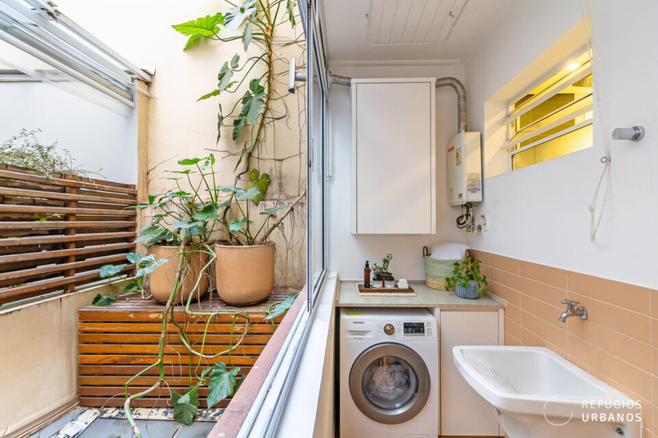 Logo adiante, a lavanderia, com ventilação natural, ainda conta com dormitório/ dispensa.