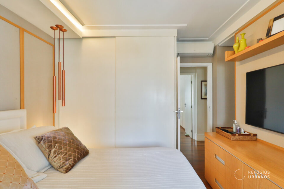 Indo para a área íntima, temos 3 amplos dormitórios, sendo um deles a suíte. Um banheiro social atende aos dois outros quartos. Há ar condicionado em todos os quartos, assim como na área social.