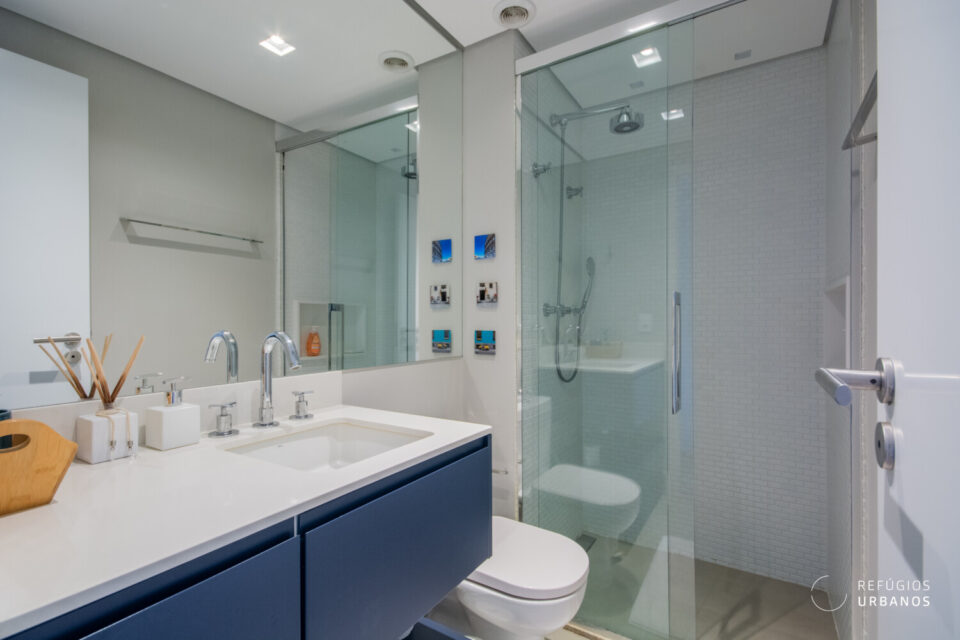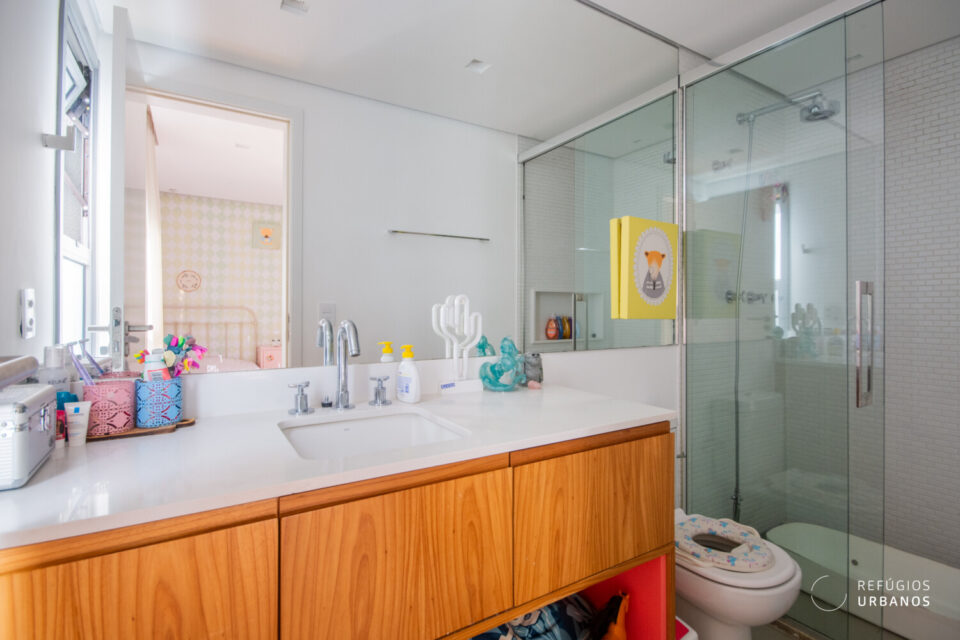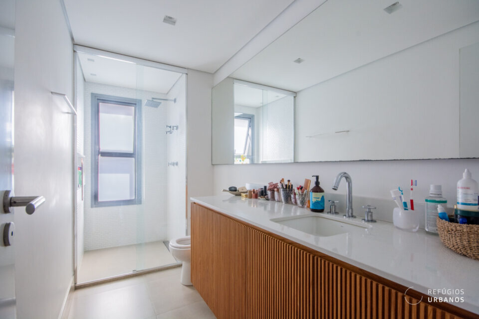 Ainda na área social, um lavabo charmoso garante conforto para receber visitas com estilo.