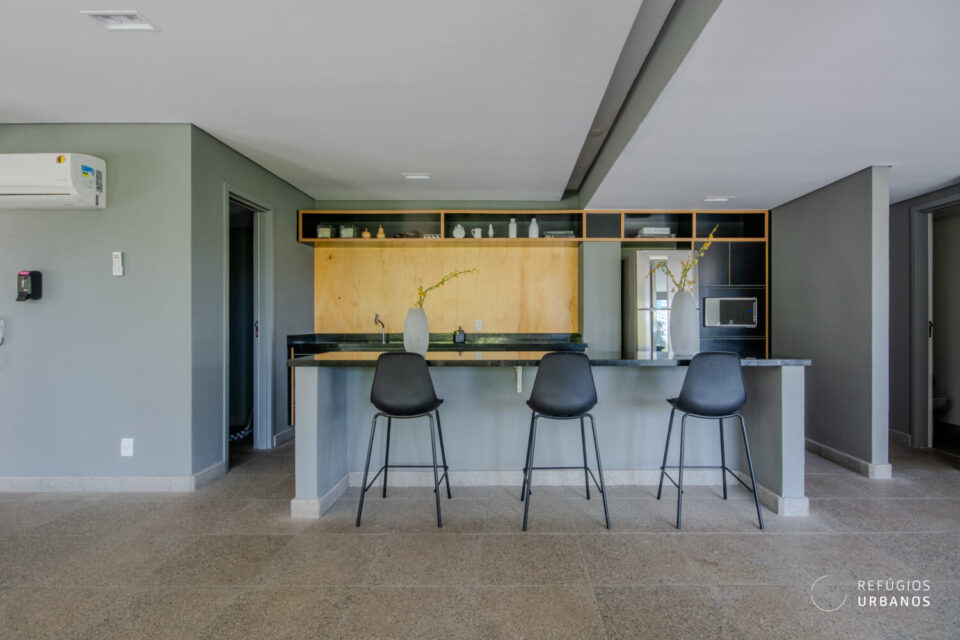 Já pensando na vida contemporânea, o projeto da FGMF Arquitetura prioriza ambientes integrados e o convívio dos moradores do apê!