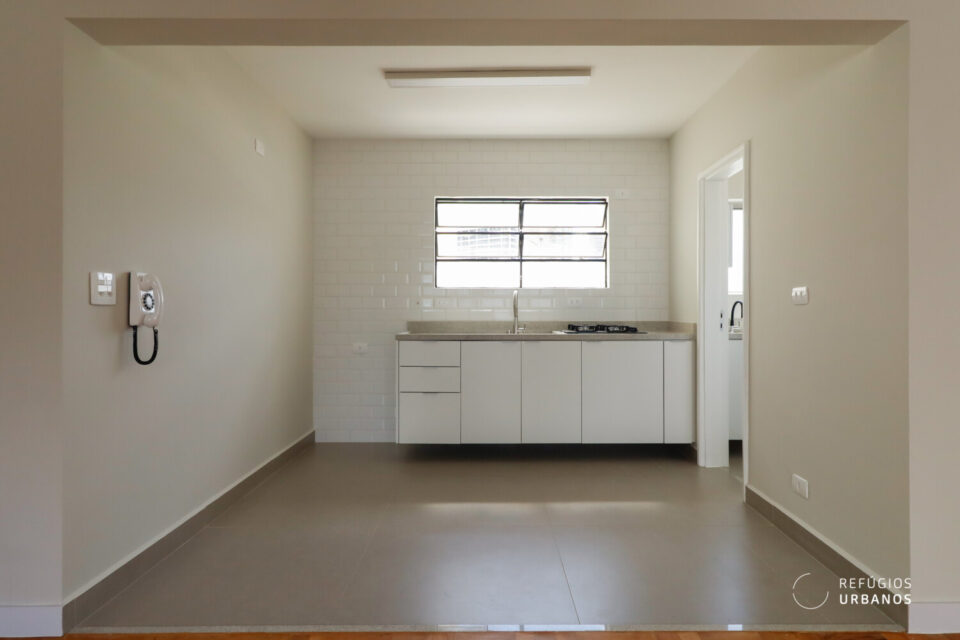 A cozinha, foi modernizada, pensada para ser funcional, aproveitando cada espaço e ainda ser totalmente harmoniosa com a proposta do apartamento. A distribuição do espaço, os revestimentos, também é um convite a cozinhar e receber os amigos.