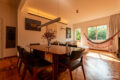 O piso de taco restaurado brilha quando a luz da manhã bate, deixando o espaço ainda mais aconchegante.