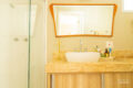 No corredor da área íntima, um banheiro social elegante atende com conforto os dois primeiros dormitórios, ideais para a família ou para um espaço de trabalho acolhedor.