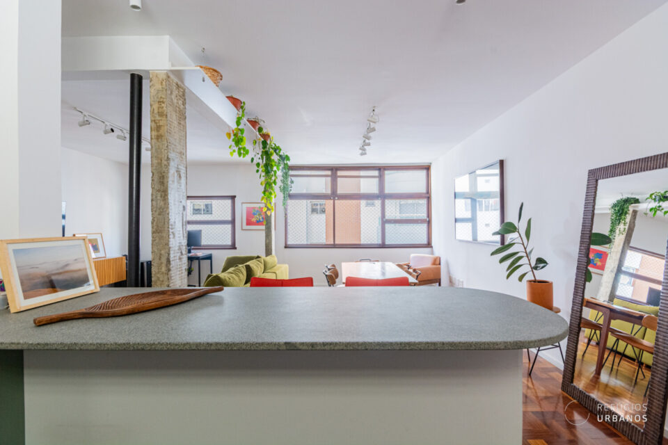 Este apartamento reformado está localizado no Edifício Tabafer, que é uma joia da arquitetura moderna, assinado pelo grande arquiteto Vilanova Artigas, bem no meio de Pinheiros.