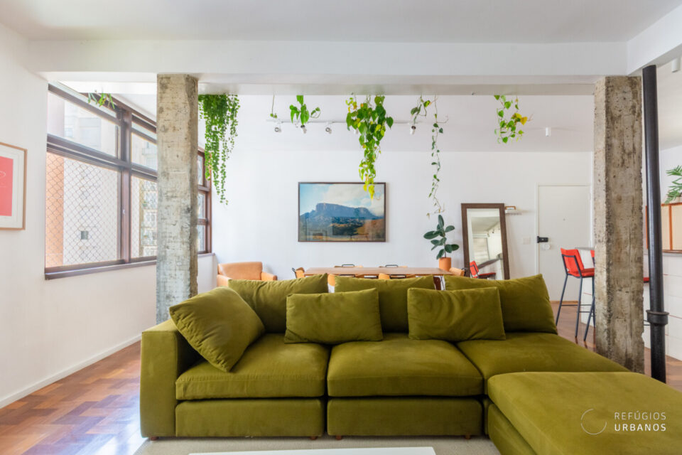 Com a abertura de um dos quartos, temos uma sala super confortável e espaçosa, ainda mais que a cozinha também foi integrada, deixando os ambientes super fluidos.