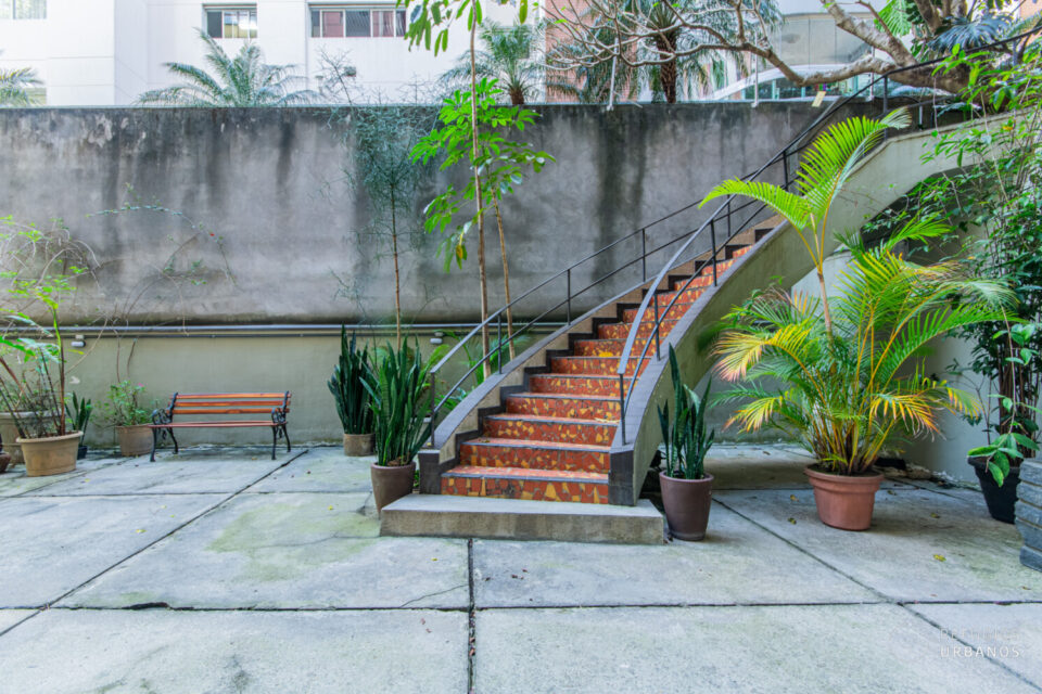 Na área interna comum, além de um hall de entrada muito bonito e extremamente bem cuidado, que atende ambos os elevadores e resguardam a portaria, o jardim privativo é uma das áreas comuns mais bonitas de Pinheiros.