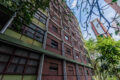 A fachada posterior é cega, ou seja, sem aberturas, onde, internamente, estão os corredores de acesso dos apartamentos em cada andar. Aliás, temos um piso lindo nos corredores.