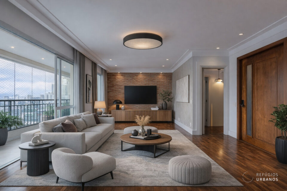 A configuração atual do apartamento conta com uma suíte com closet e mais um dormitório e um banheiro completo, porém, seria possível reverter parte da sala em mais um dormitório.