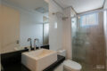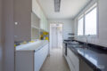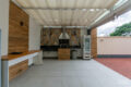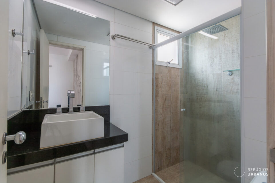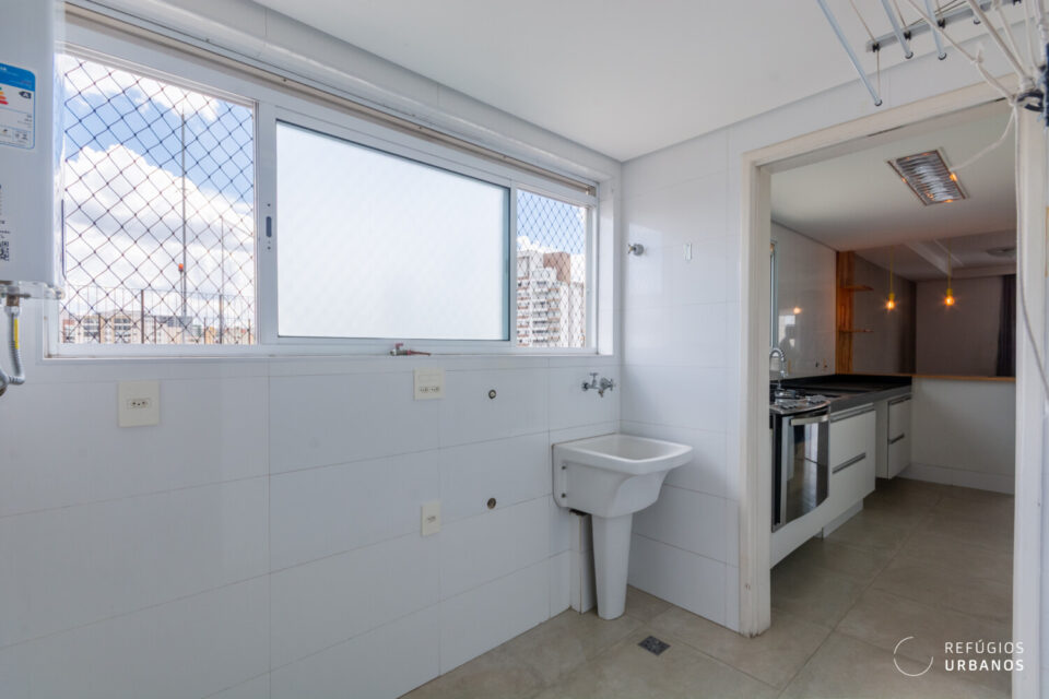 Junto à cozinha fica a área de serviço que conta com banheiro e gás de passagem para os chuveiros.